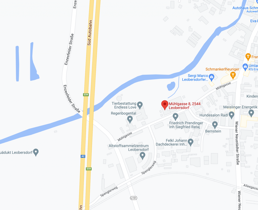 - A2 Südautobahn Abfahrt Leobersdorf, geradeaus über die Ampelkreuzung.